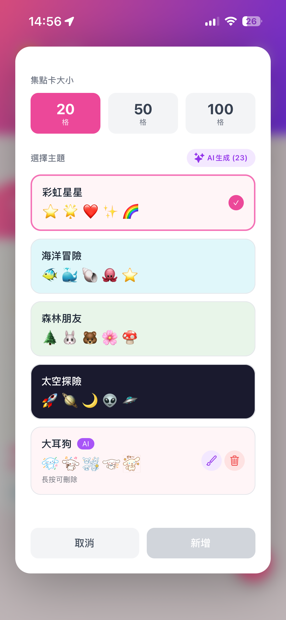 除了 AI 生成,我們也內建設計師手繪的精美主題。海洋、森林、彩虹,隨心情自由更換。